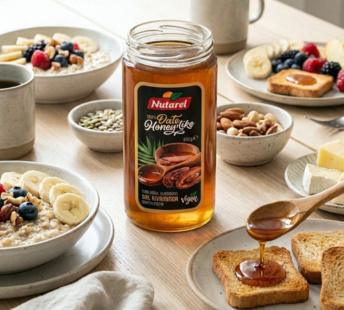 %100 Hurma'dan elde edildiği için haliyle; aroma ve rayiha bakımından Arı balı ile benzerlikler içerir. Hurma Suyu’ndan farklı olarak üretim aşamalarında farklı demleme ve filtre yöntemleri uygulanmıştır. Yoğunluk, renk ve lezzet bakımından Arı Balına benzer bir kıvam elde edilmiştir. Dünya’da ilk ve tek Hurma Özünden elde edilen BAL KIVAMI özelliğine sahiptir. Bu alanda yapılan sayısız çalışmalara rağmen hiçbir ürün Nutarel Date Honey kadar başarılı olamamıştır. Başta Avrupa ülkeleri olmak üzere TAKVİYE BESİN ve DİYABETİK reyonlarında yoğun ilgi görmektedir.